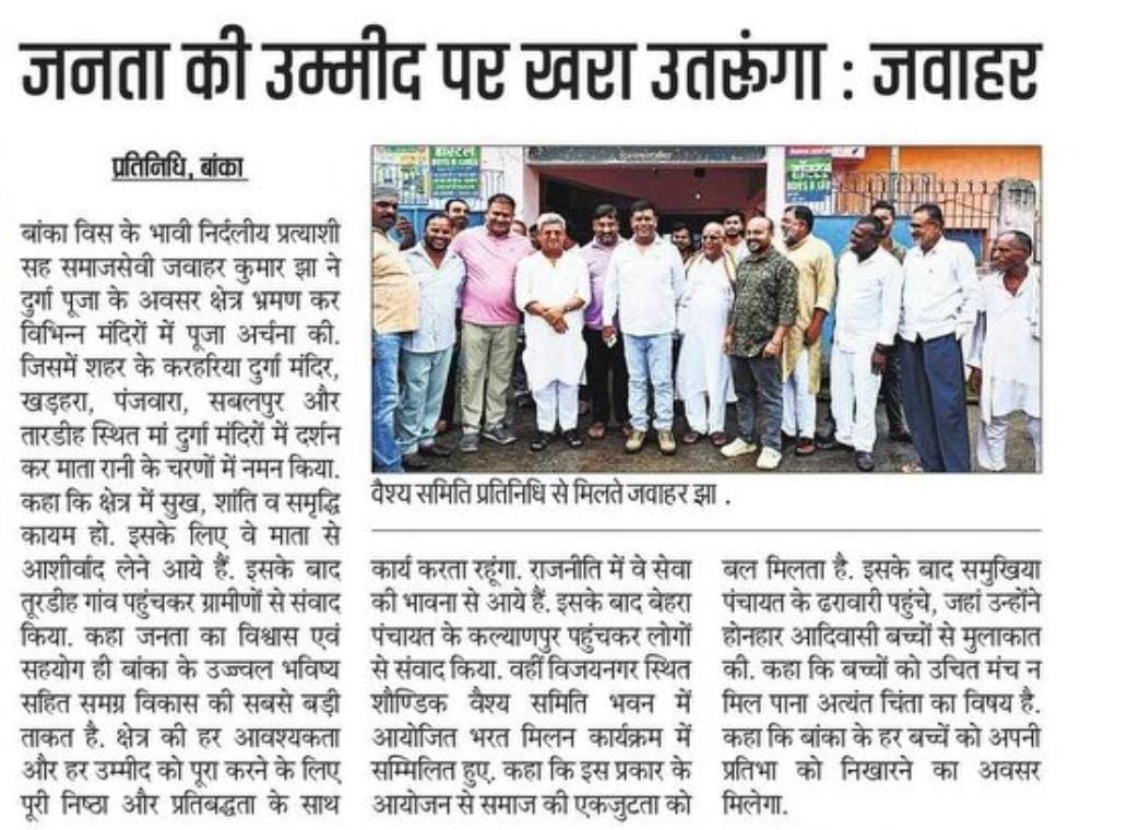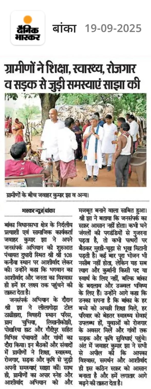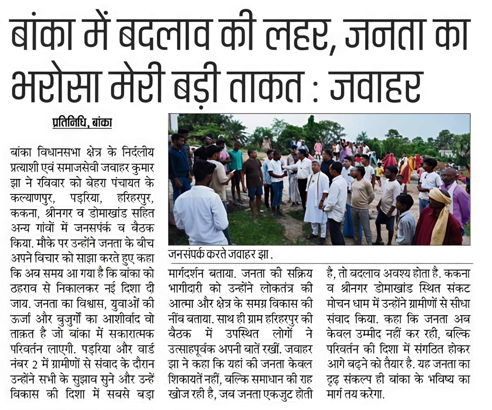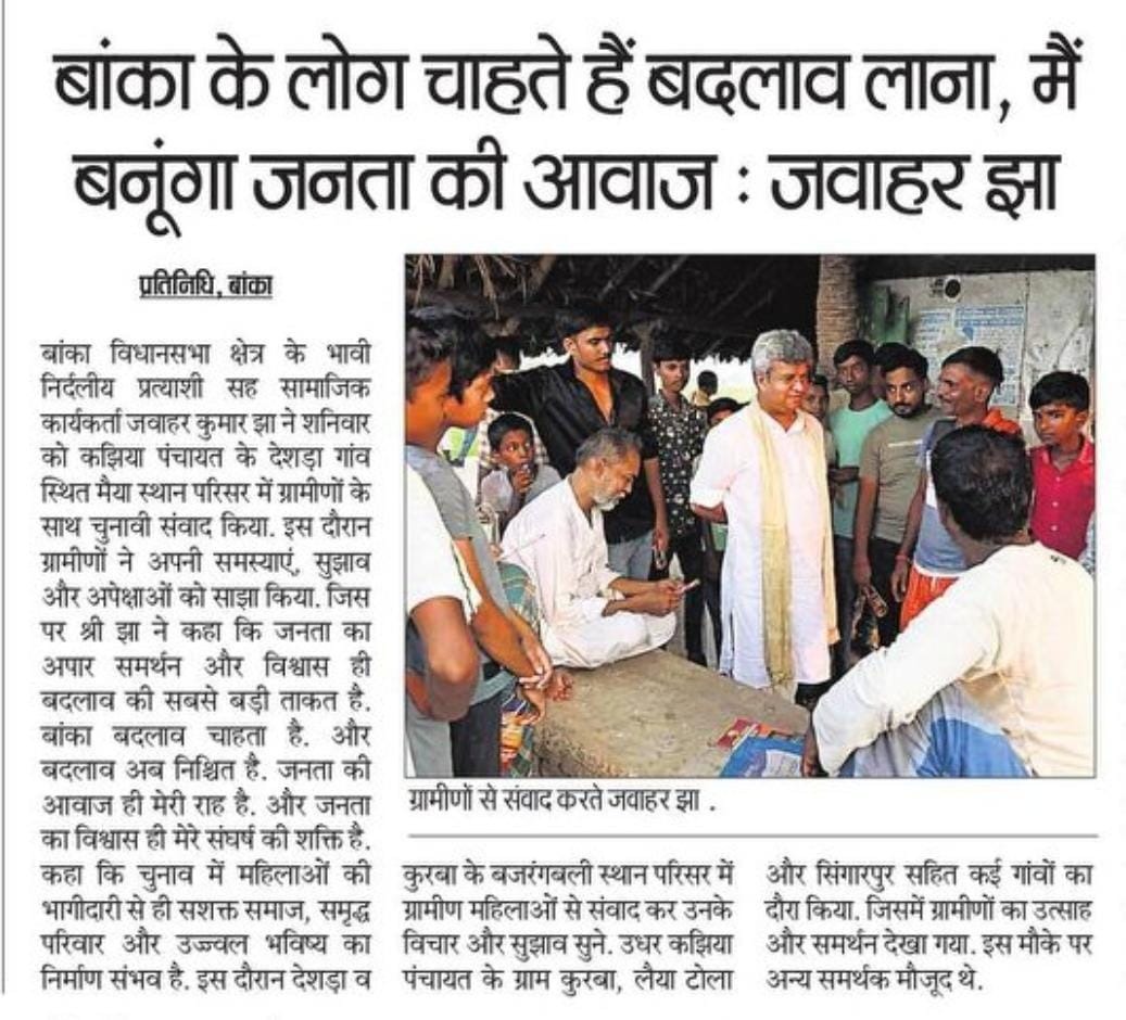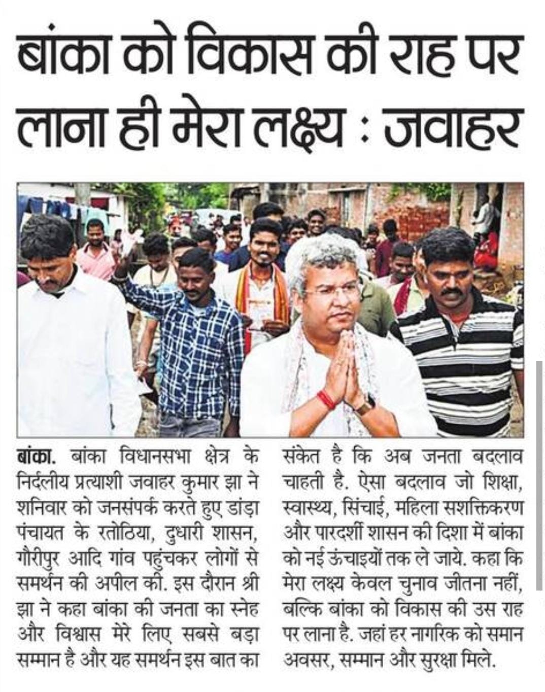 बांका में जनसंपर्क के दौरान स्थानीय नागरिकों से मिलकर उनके विचार, सुझाव और क्षेत्र की आवश्यकताओं पर संवाद किया।